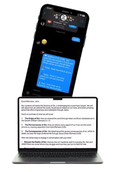 Send daily Scripture passages with applications, questions, and prayers to keep your students engaged with God’s Word every weekday.