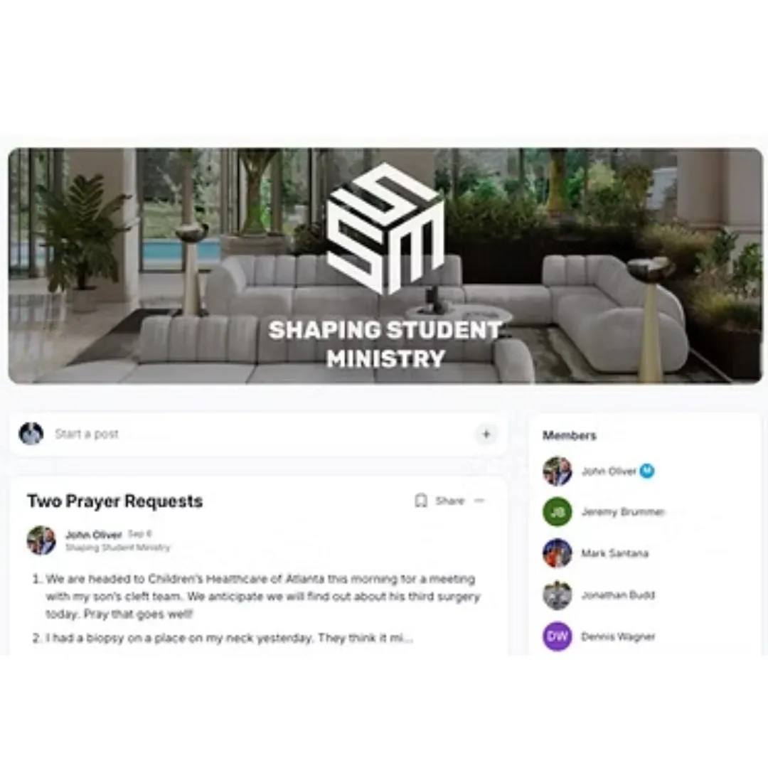 Shaping Student Ministry Lobby: Connect with other leaders to support each other through struggles, share ideas, and work together in live online events or through posts. Join exclusive sessions with experts and other student leaders like you to navigate the complex youth ministry world. Our community offers: